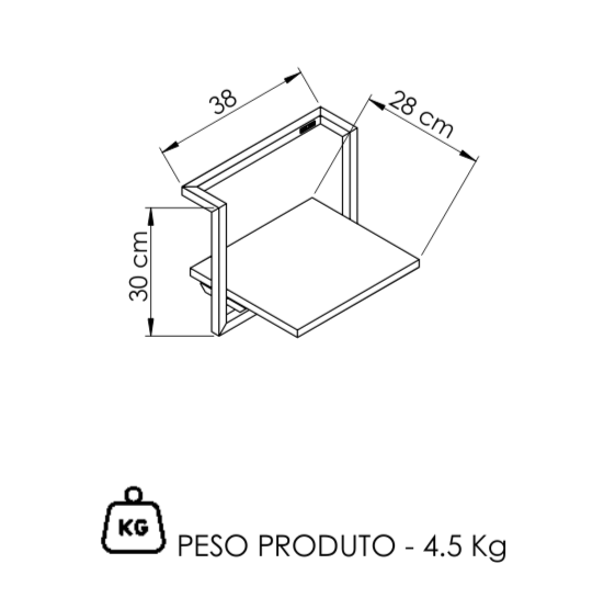 ESTRUTURA: Aço 20mm × 20mm com pintura eletrostática em preto fosco.